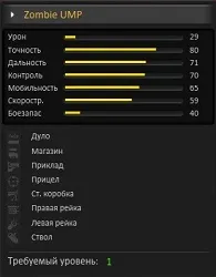 1. Zombie UMP - ПП, сделанный из специального сплава. Обладает высокой скорострельностью и низкой отдачей, а большой объем магазина позволяет убивать большее количество противников. Еще одним важным показателем является возможность полной модификации пистолет-пулемета.