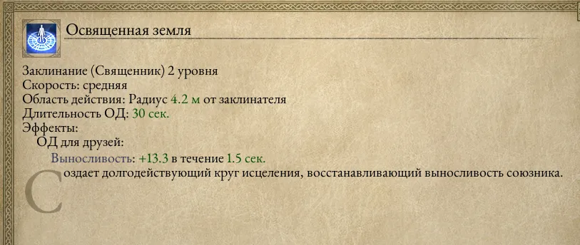 После упокоения некроманта священник получает 6-й уровень. Рекомендую взять "Вдохновляющее сияние" - талант, увеличивающий точность на 10 единиц после использования "Святого сияния". Что примечательно, этот бафф считается независимым положительным эффектом - он не подлежит подавлению. Более того, эффекты точности от разных священников складываются! В группе из 6 жрецов вы можете получить +60 к точности.