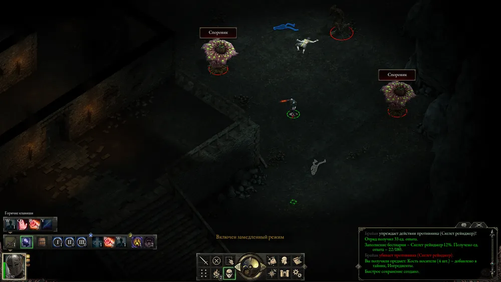 К востоку от места встречи с Айорном (рядом с двумя споровиками) видим тело культиста, с которого при скрытности в 7 единиц (экипируем ботинки) можно забрать капюшон. Я предпочитаю не вступать в бой с троллями и споровиками из-за их многочисленности и вредной привычки первых преследовать персонажа по всей локации.