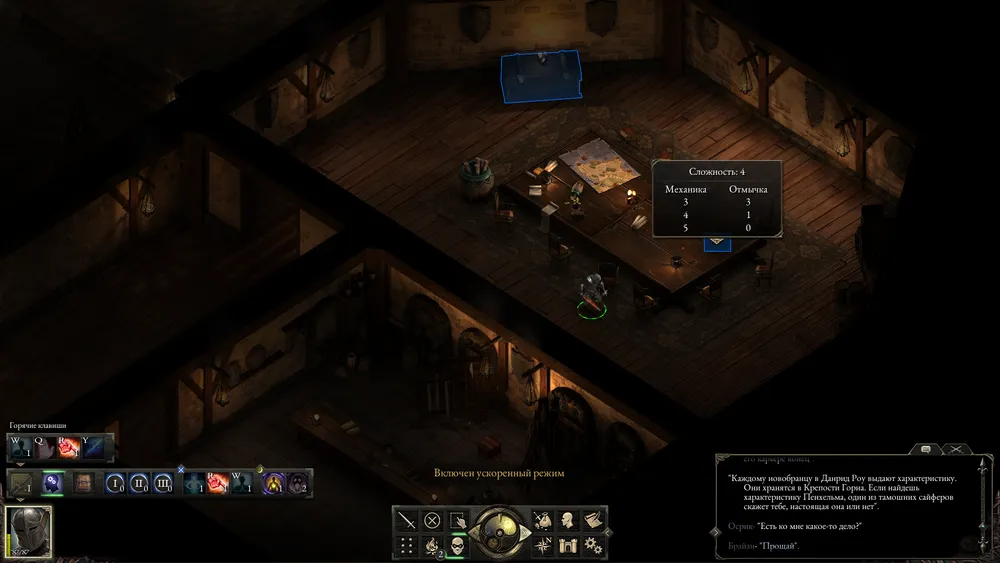 Узнаём о драгоценности, хранящейся в особняке лорда Реймонта (здание справа от особняка Доменелов). Сундук, в котором лежит камень, защищен ловушкой, для обезвреживания которой требуется 8-я механика. Отдохните в "Гусе и лисе", выбрав бонус +1 к механике и экипируйте перчатки манипуляции.