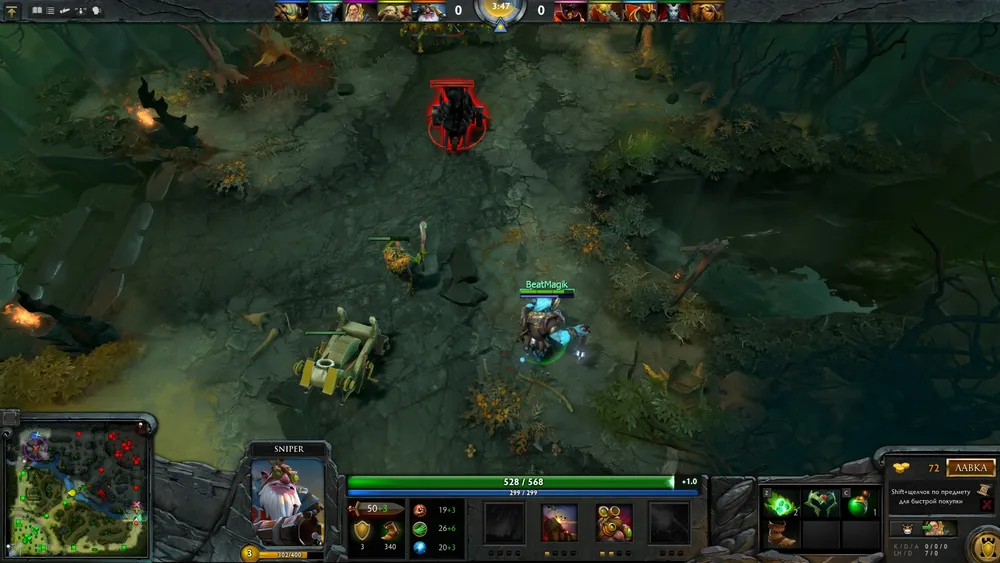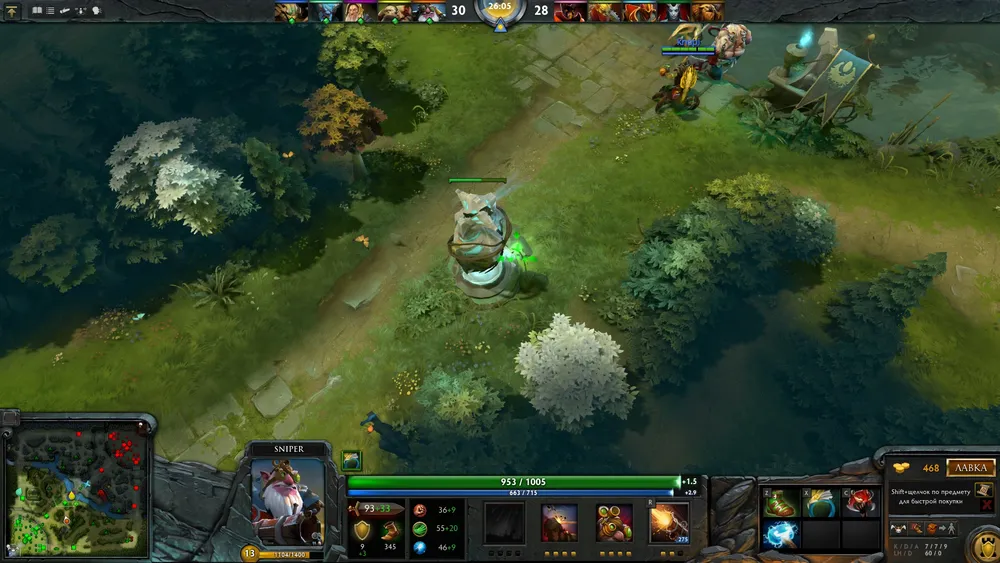 Sniper или же пушкарь – один из тех персонажей, которых легко освоить и причинять ад и содомию, если же, конечно, у вас прямые руки и вы не родились под знаком рака, а то мало ли. Этот гайд будет сконцентрирован на поднятии скорости атаки и использовании эффективных способностей пушкаря: увеличение дальности атаки и микро – станы, позволяющие держать противника на приличном расстоянии. К пуджам и шторм спиритам применять не рекомендуется.