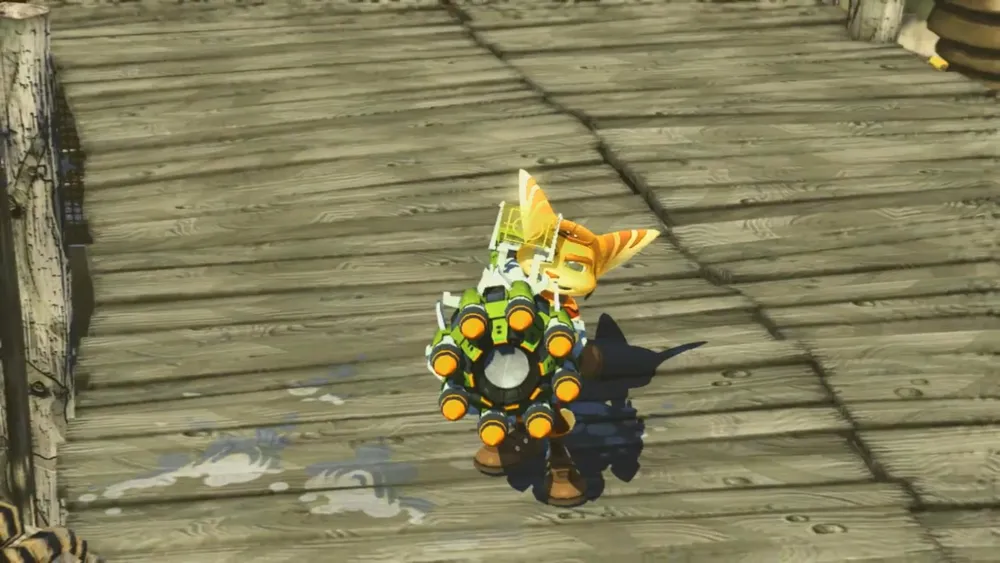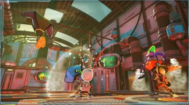 Несмотря на то, что персонажей в команде четверо, в одиночном режиме можно играть только за одного героя при содействии управляемого AI помощника. При игре за Рэтчета, Кварка и Нефариуса таким соратником станет Кланк, который компактно располагается в рюкзаке позади основного героя. Если игрок выбрал Кланка в качестве основного персонажа, то сопартийцем станет кто-то из трех героев. Я, например, бегал с Кварком, который очень смешно залезал в рюкзак, уменьшаясь раз в двадцать. Сразу скажу, что игра сделана с большим упором на кооперативный режим, та как играть с друзьями за одной приставкой или по сети – это неописуемо весело. Но и в одиночном режиме есть чем заняться. Несмотря на это, в перемежающих игру роликах присутствуют все четыре персонажа. Да не суть, если честно.