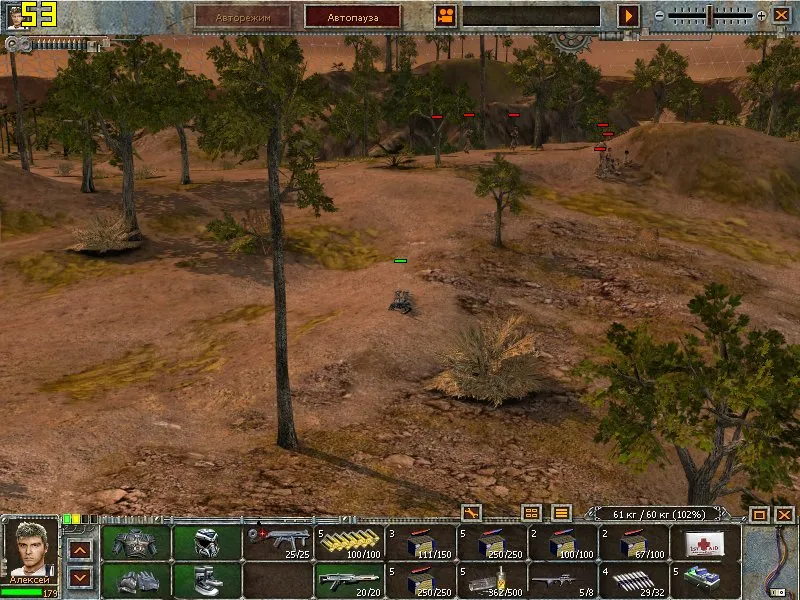 Зато теперь ясно, чего нельзя делать – нельзя идти в лобовую атаку, моментально убьют. Двинулся налево, обошёл второй отряд противников и поднялся на холм у них в тылу. Враги – как на ладони. Достал лазерный пистолет и без особых проблем уничтожил эту группу, пополнив запас батареек. Пожалуй, стоит продолжать движение в том же направлении…