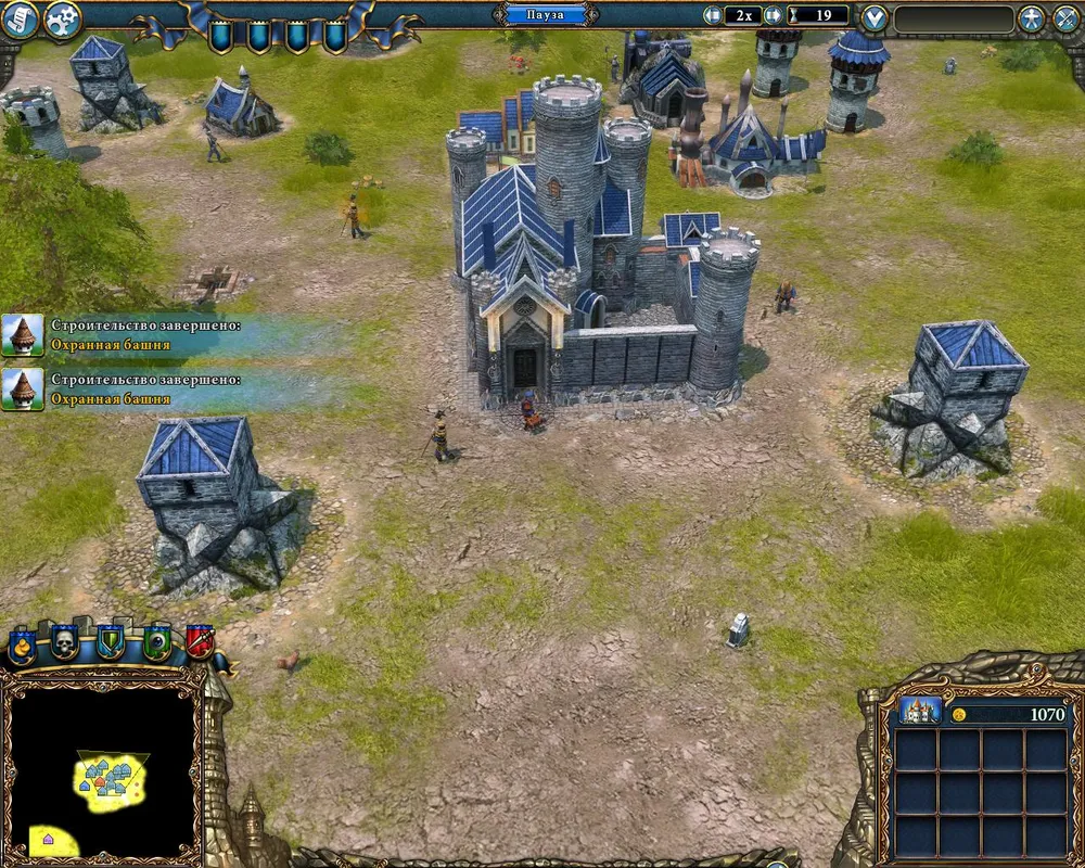 Замок расположен в центре карты – мы снова в окружении. Во все стороны отправляем разведчиков, максимально сокращаем численность вражеских жилищ и отстраиваем торговые посты - золота много не бывает.