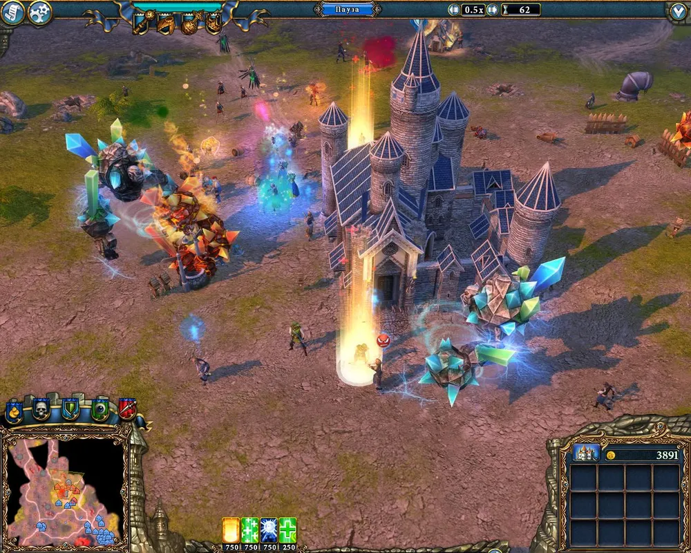 Как только башни, охраняющие замок, будут уничтожены молнией – можно посылать героев в атаку. Самая простая из миссий.