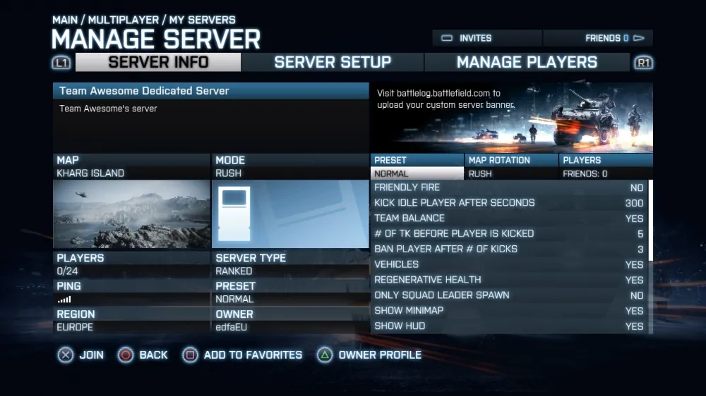 Появилась также возможность взять в аренду сервер для игры на Playstation 3. Эта опция доступна через игровое меню, пункт «RENT A SERVER».