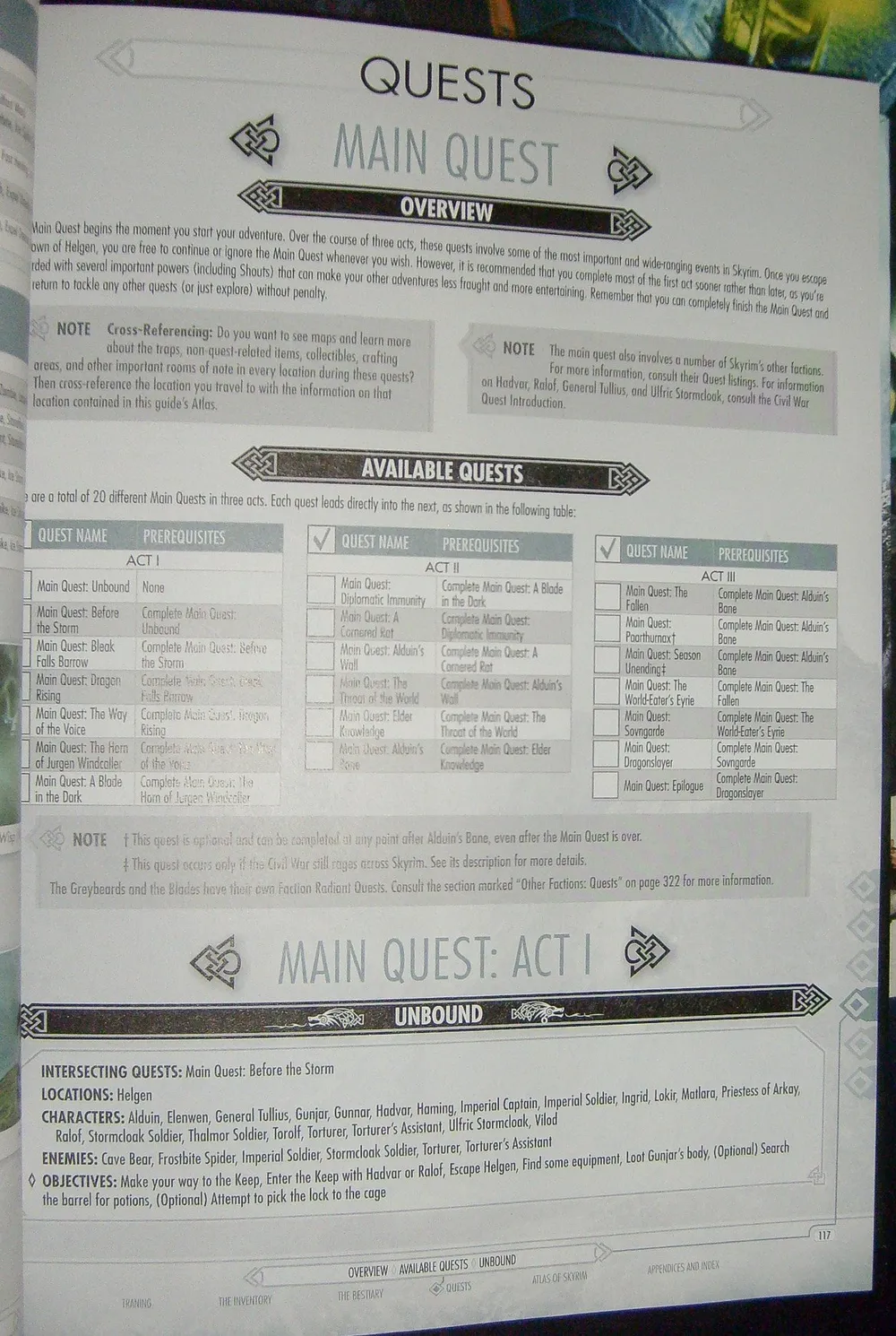 Составители руководства заботливо расставили пометки о спойлерах в квестах и некоторых описаниях.