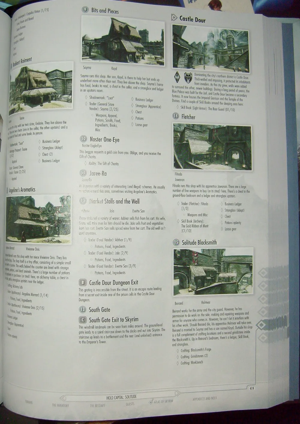 К каждому владению написаны списки квестов, уникальных и специальных вещей, описания и карты находящихся объектов.
