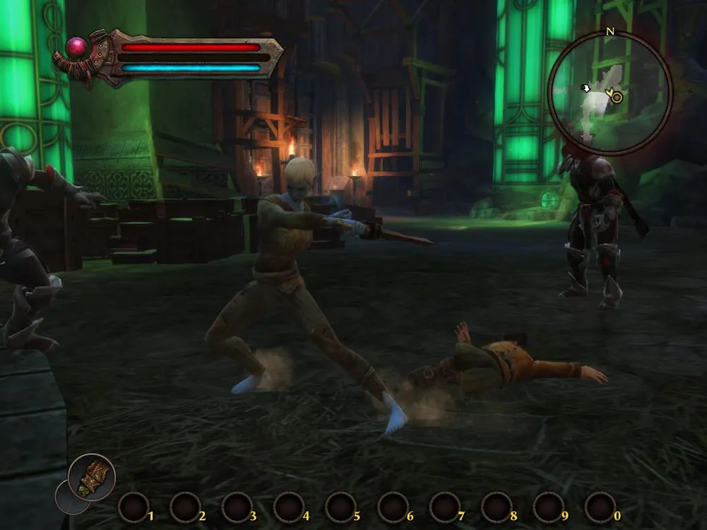 Пройдя немного дальше мы получим свой первый клинок и встретимся с противниками. Боевая система очень проста в освоении, она заключается в последовательном нажатии левой кнопки мыши и...и все. Так же по мере роста в уровнях мы будем открывать новые комбо, которые потребуют от нас чуть большей сноровки. В бою мы можем зажать кнопку атаки, и получим неплохой по мощности удар.