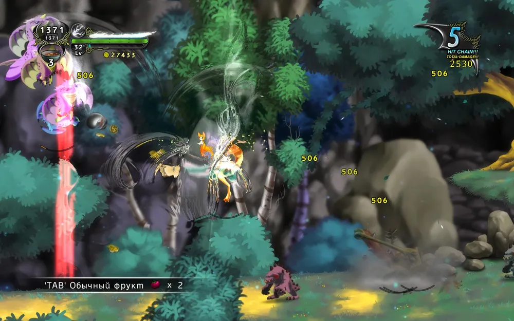 Как таковые комбо в игре есть, но особого смысла целенаправленно их применять нет. Характерной болезни жанра — «застревания в комбо», когда вы не можете его прервать — здесь взяться неоткуда, контроль полный. Единственное исключение — вихрь в прыжке. Если увлечься, то можно в буквальном смысле улететь по цепочке врагов на другой конец уровня.
