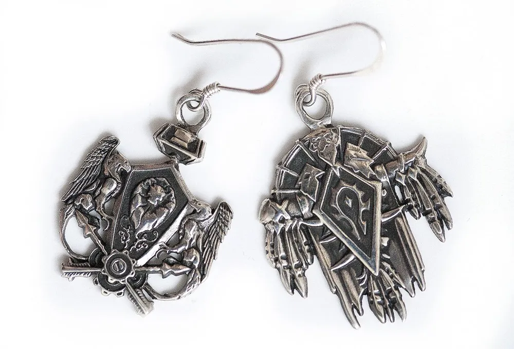 Очень сложно было бы выбрать что-то одно, ведь в Hearthstone я играю за обе фракции (а еще за всеобщих врагов и аутсайдеров - на любой вкус), поэтому серьги разные. Сами значки небольшого размера, и я даже подумала, что стоило бы заказать кулоны, но качество проработки на таком малом формате впечатляет.