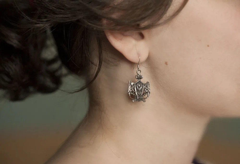 А если обойтись без мелких придирок, то серьги меня порадовали безмерно. Это на макросъемке видны все огрехи (типа пор на моей коже, ааааа), а в жизни на такие мелочи не обращаешь внимания. Серьги вышли маленькие, и многое я разглядела только на фото (того же льва). Для сравнения - пара фот на живом человеке (с удаленными огрехами, спасибо фотошопу).