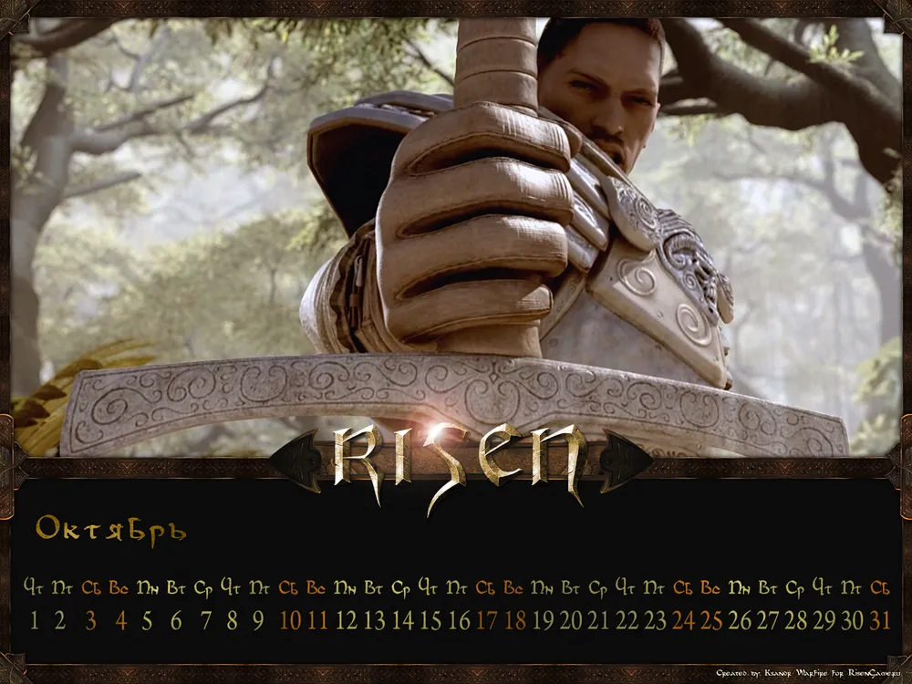 В этом месяце мы немного задержали публикацию очередного календаря. Релизное время, написание глобального прохождения, над которым трудится вся команда. Но мы не могли оставить вас без октябрьского выпуска календаря. В посте 1600х1200 и 1680х1050. Остальные на RisenGame.ru