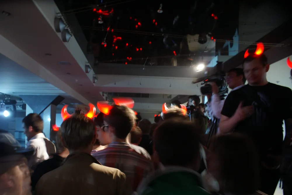 Сначала девушки-музыканты вживую исполняли популярные саундтреки из Diablo, затем на сцену вышли черти на ходулях, акробаты и жонглеры, потом настал черед демонов-барабанщиков (ох, как они играли). Может, я что-то и пропустил, но и немудрено – поклонники Diablo настолько плотно обступили сцену, что увидеть феерическую вакханалию было очень и очень трудно. Завершилось все неописуемым костюмированным действом в рамках конкурса, по правилам которого обладатели самого интересного одеяния получали главные призы вечера.