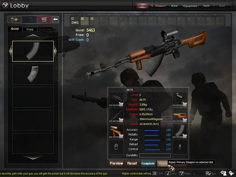 2. На шестом уровне можно задуматься о более серьезной пушке. Если МP5 у нас для контроля на ближней и средней дистанции, то теперь стоит сделать Калаш. Для дальних дистанций он очень неплох.