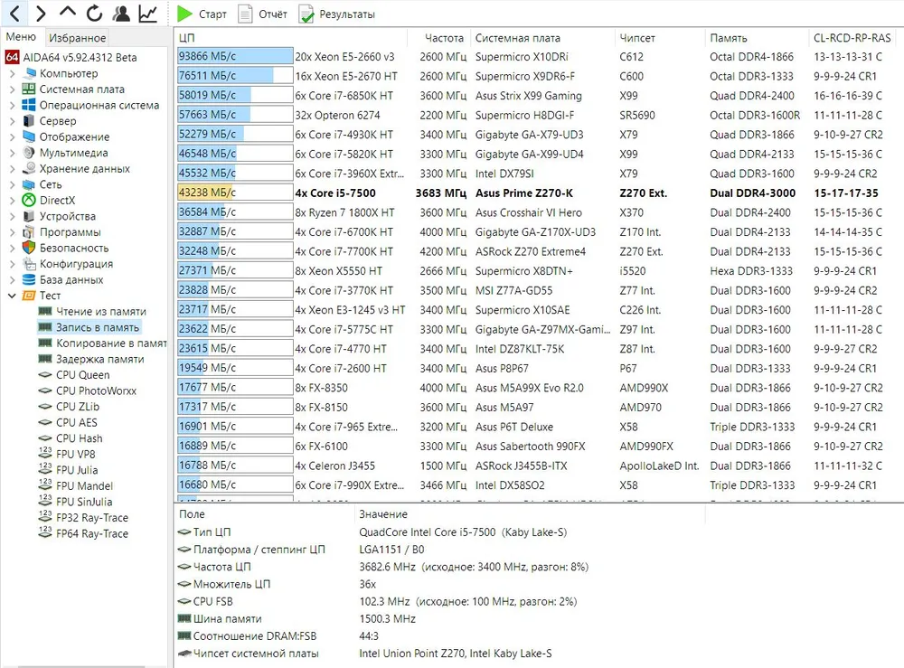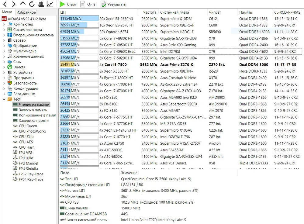 Показания Read/Write из данного теста позволяют оценить пропускную способность памяти в штатном режиме работы: приблизительно 30-31 Гб/с.
