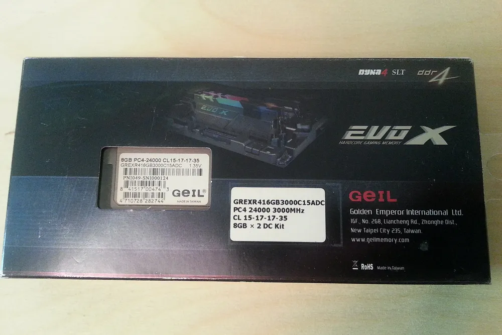 Здесь речь пойдёт о наборе оперативной памяти GEIL EVO X ROG Certified DDR4-3000 2 X 8 GB.