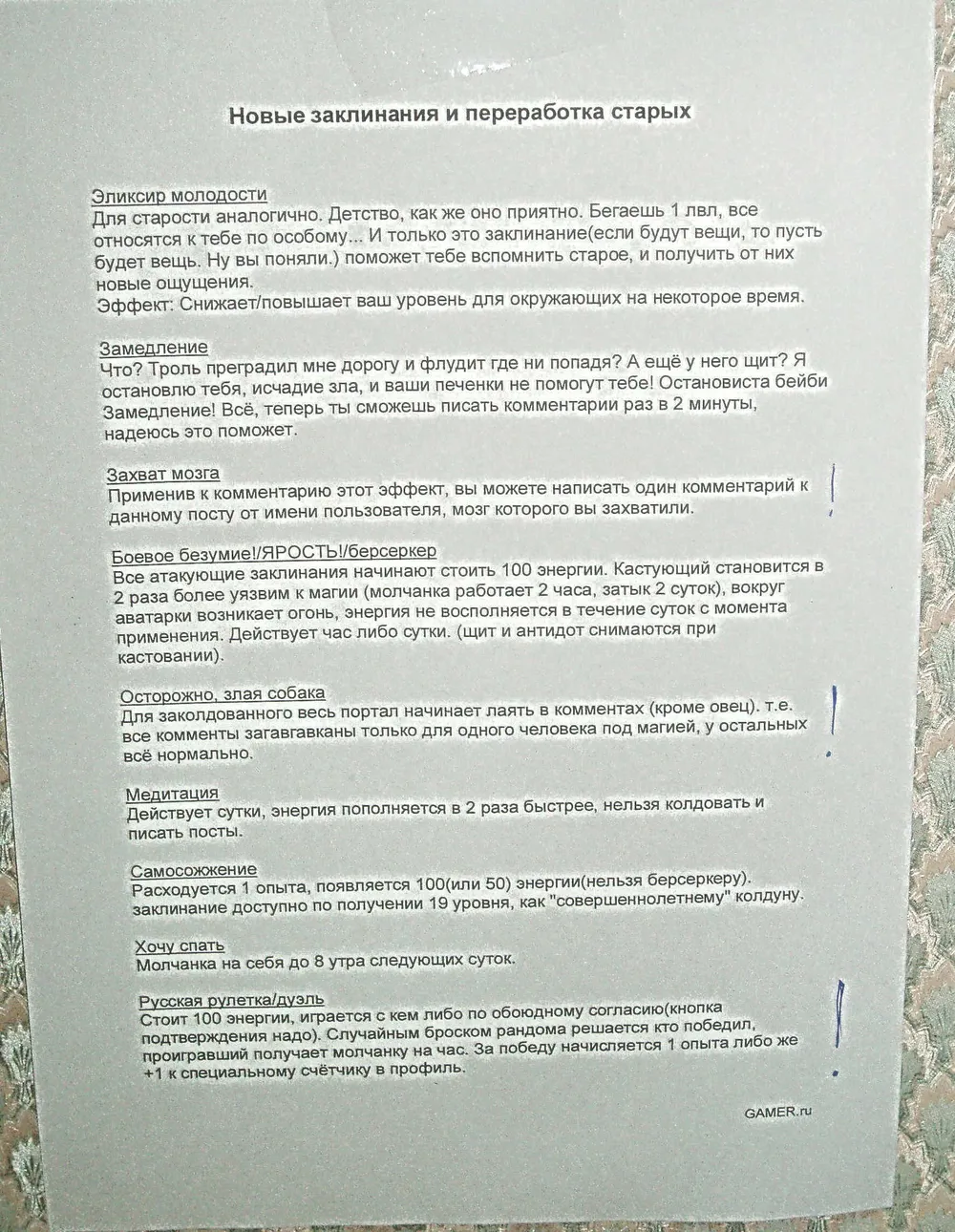Во-первых идет активное обсуждение по изменению старых и введению новых заклинаний. Документальное подтверждение того, что наши и ваши предложения не канули в лету, вы сможете увидеть под спойлером.