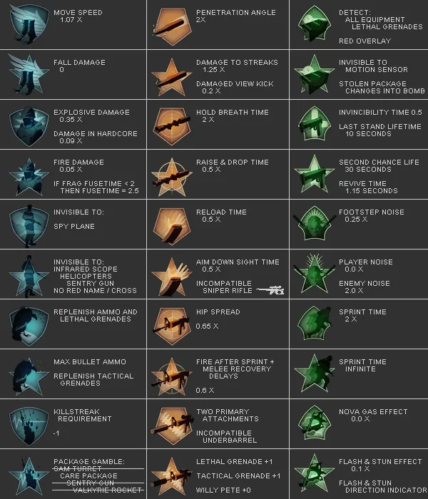 Популярный игрок, с ником DenKirson (офф сайт этого плеера), предлагает вашему вниманию детальное описание перков, оружия, наград за серии и прочего (правда только в цифрах :)).