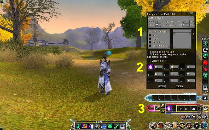 Номер 2) «Горячие» клавиши, которые вы можете установить для Invigorator. Умения с наименьшим числом будут иметь высший приоритет использования.
