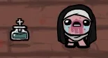 По комнате летает глаз, который наносит урон врагам.Слёзы становятся кровавыми.