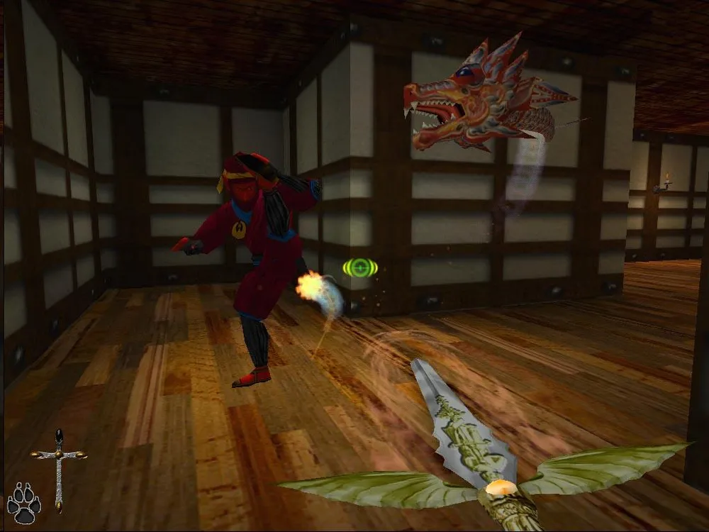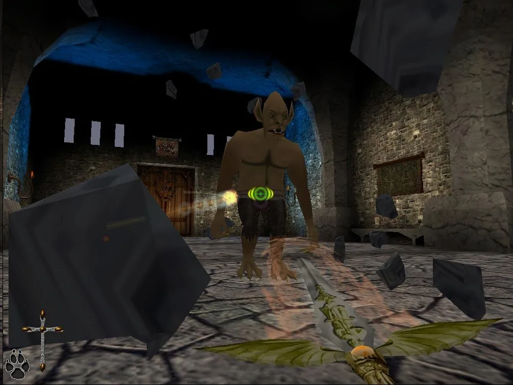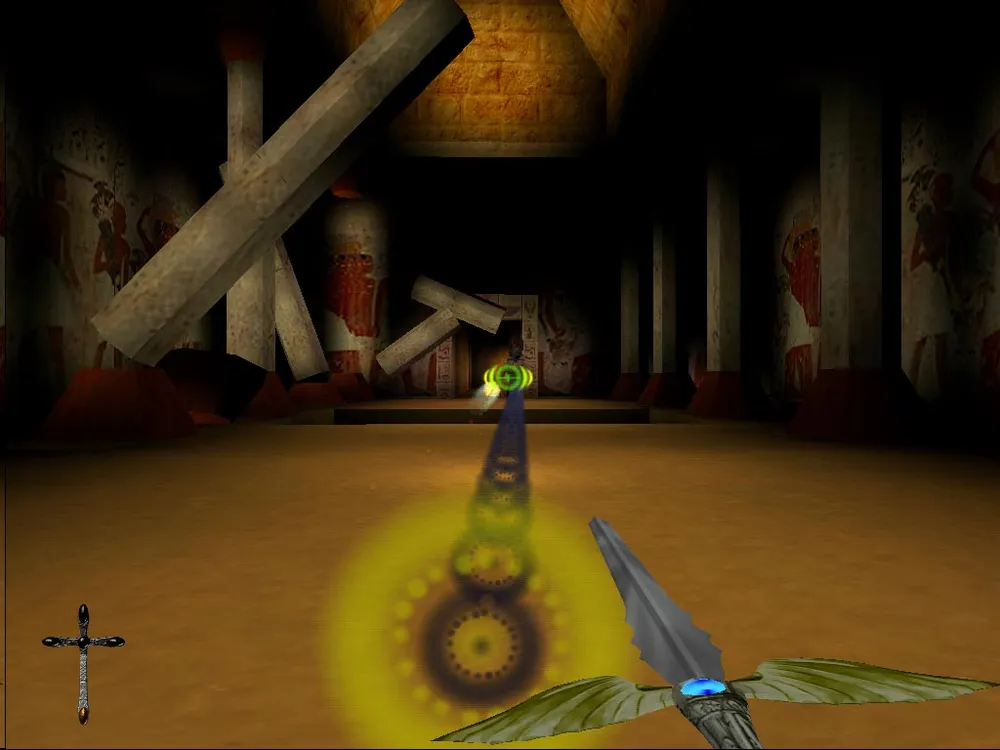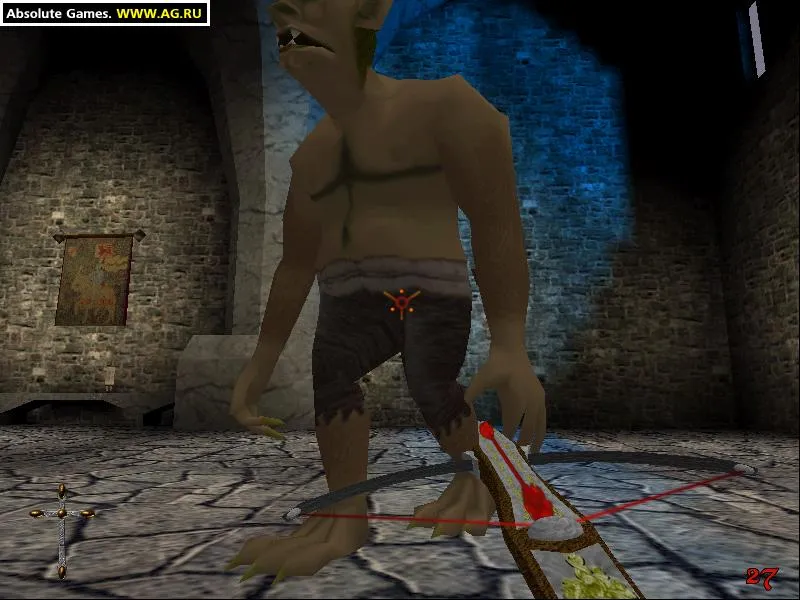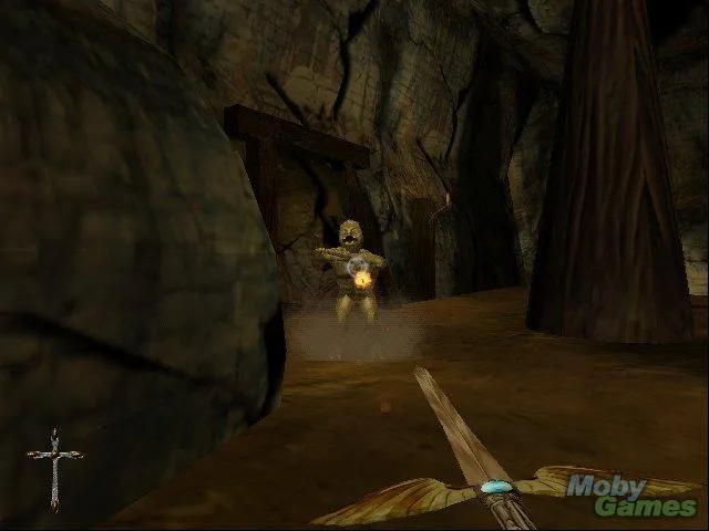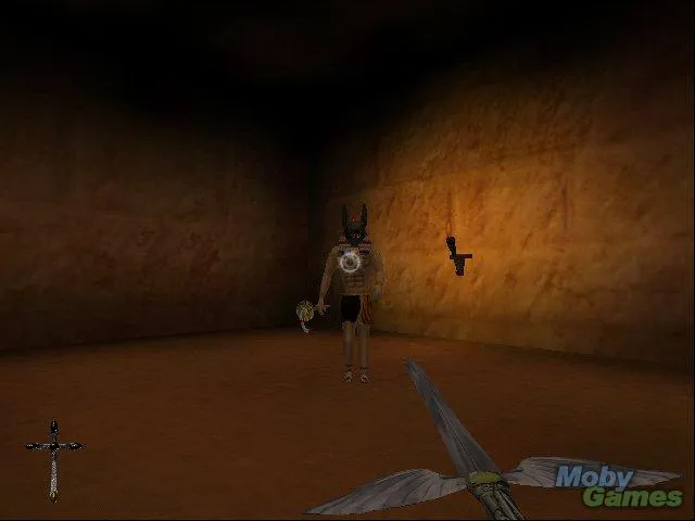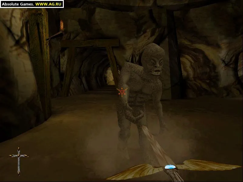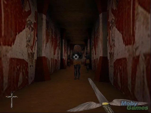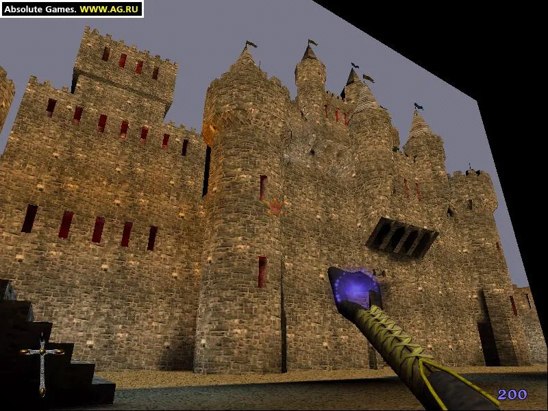 Итак, нам снова дают магический стреляющий меч. Но даёт его священник – не ангел. Мы не окунаемся сразу в действие, как в Catechumen’е, нет, – даже самого священника ещё надо сначала найти. Мы можем исследовать окружающий мир: можем зайти в дома бюргеров, поговорить с жителями. Можем обнаружить целый игровой уровень, на котором ничего нет, – только пустые помещения. Ведь может же быть в доме подвал? Сначала это кажется ненужным реализмом, но потом, когда мы получим ожог от случайного прохода мимо факела не стене или будем с трудом пробираться по катакомбам по пояс в мутной воде (в воде ведь труднее идти, правда?) и увидим весьма реалистичную симуляцию плавания, а чтобы перепрыгнуть незначительное, на первый взгляд, препятствие, придётся повторять попытку много раз, причём иногда необходимо будет вернуться на предыдущий уровень и повторить огромный путь, только чтобы получить возможность прыгнуть ещё раз, мы уже обратим внимание, что что-то здесь не так, что под калькой «агитки» скрыто большое, но неразгаданное творение.