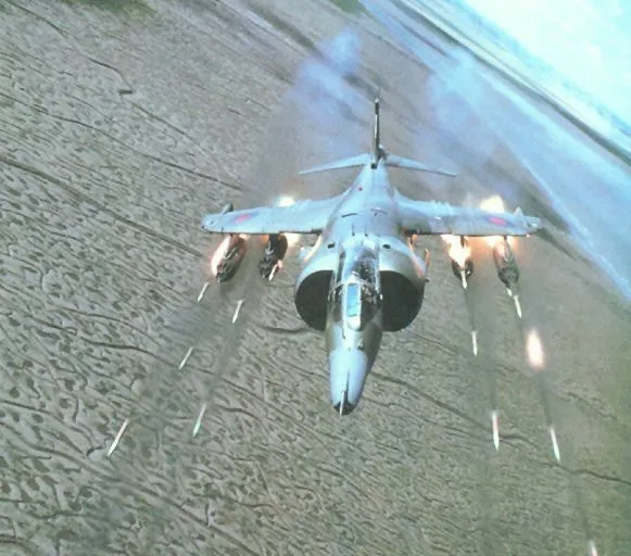 Harrier GR.Mk 5: вариант самолета AV-8B для ВВС Великобритании с некоторыми изменениями в оборудовании: оснащен двигателями Пегас 105 с тягой 95 кН и двумя 25-мм пушками ADEN; под фюзеляжем и крыльями расположены девять контейнеров с вооружением, две внешние подвески предназначены для установки ракет "воздух-воздух" "Sidewinder"; два опытных образца плюс 60 серийных самолетов заказаны в 1982 г; 40 самолетов построены по стандарту GR.Mk5; последующие 22 самолета - по временному (промежуточному) стандарту GR.Mk 5A (без системы FLIR); по контракту, заключенному с компанией Бритиш Аэроспейс (BAe) в 1990г., 58 самолетов GR.Mk 5/5A должны быть модернизированы до стандарта GR.Mk 7.