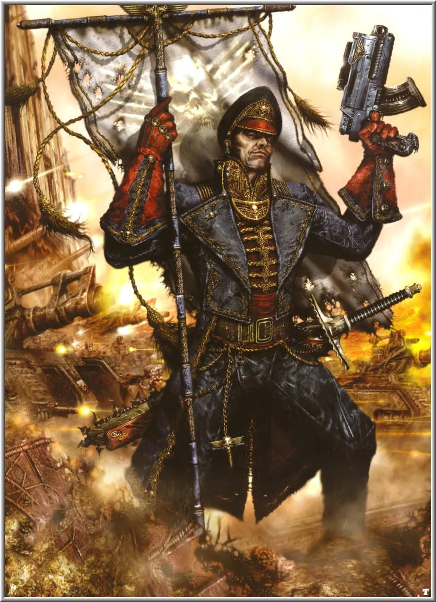 Гвардейские полки прибывают со всей галактики, иногда из примитивных или анархических миров. До своего призыва на службу, солдаты не имеют понятия о своей действительной роли в Империуме Человека. Имперские комиссары служат для разъяснения задач, поддержания дисциплины и руководства полками. Они необходимы, т.к. многие части плохо дисциплинированны и обучены, многие прибывают из миров, где уважают только грубую силу и не признают никакую власть. Полковые командиры ничем от них не отличаются. В каждом полку есть как минимум один комиссар, а в некоторых их несколько. Комиссары поддерживают боевой дух войск, работают совместно с полковыми командирами и направляют их. В некоторых случаях комиссары должны заслужить уважение со стороны своих подчиненных в боях, прежде чем им станут подчиняться. Иногда происходят поединки между ними и командирами полков, чтобы выяснить - кто из них главнее и сильнее. Другие же полки прибывают из урбанистических миров, им понятны принципы дисциплины и субординации, но это еще не значит, что из них получатся хорошие солдаты. Как правило, лучшими являются те войска, которых труднее удержать в узде. Другое же назначение комиссаров - наблюдать за тем, чтобы рекруты не попали под влияние приверженцев Культа Хаоса и шпионов чужих. Они должны подавлять попытки бунта и саботажа в зародыше, а также пресекать попытки перехода на сторону противника во время боя. Комиссары должны удерживать своих подчиненных от всех возможных проявлений непослушания и т.п.