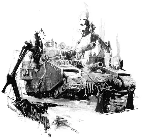 И хотя Leman Russ - медленное, громоздкое транспортное средство по сравнению с другой техникой в арсенале гвардейцев - его неприхотливый двигатель будет работать на любом доступном топливе. Дополнительное вооружение, электрика и системы жизнеобеспечения - все питается от внутренних генераторов танка.