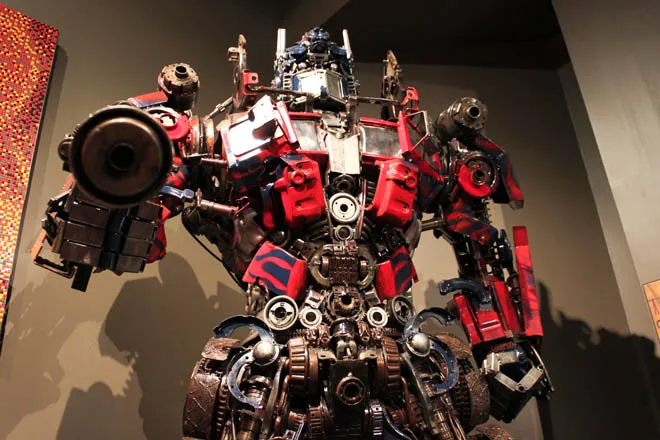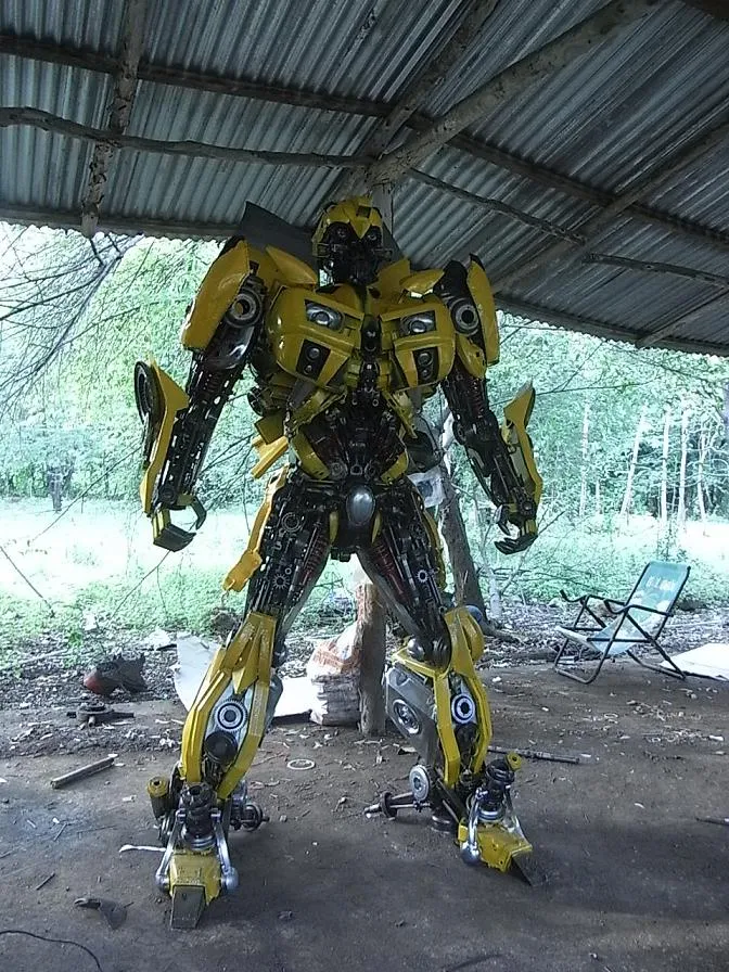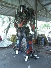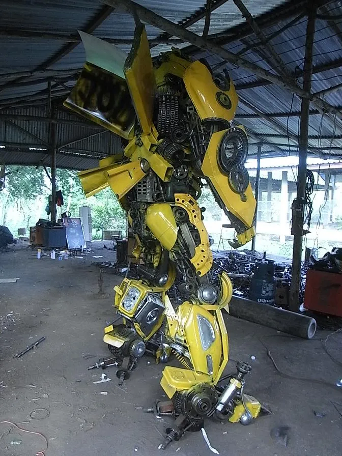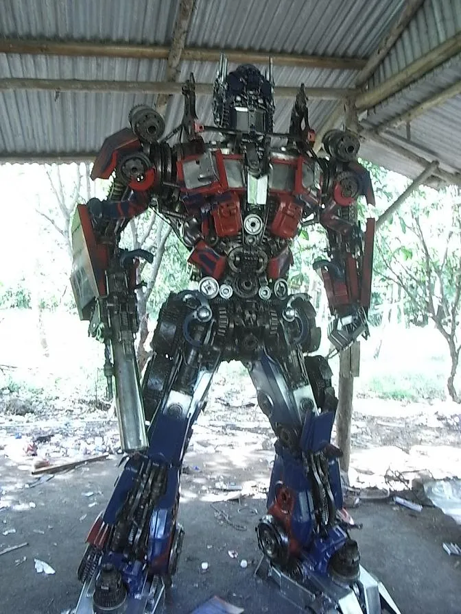 Таиландский скульптор Anchalee Saengtai, с руками из правильного места и кучей свободного времени, собрал у себя во дворе шестиметровую статую Оптимуса. Использовал он, естественно, разнообразные части автомобилей.