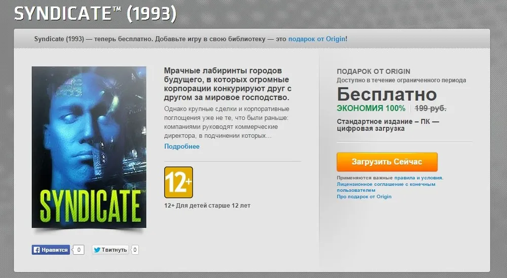 На сей раз раздача добралась до киберпанковски стильной и умной тактики Syndicate 1993 года