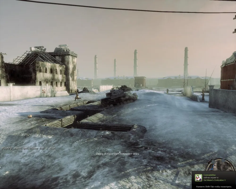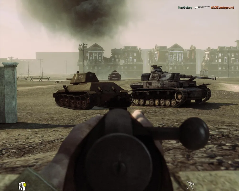 Первые впечатления от мультиплеера тоже не охарактеризуешь хвалебными эпитетами. Неподготовленный игрок попадет в мир забагованного хаоса без постоянного свиста пуль над головой, кинематографических взрывов и убийств в полете. Напротив: заставить игрока навсегда лечь на землю можно только прицельной стрельбой, при этом вполне достаточно будет одной-единственной пули. Определиться с тем, за кого хочется играть, приходится почти сразу – для баланса разработчики ограничили игроков в выборе. Так, снайперов в команде не может быть, к примеру, больше трех, зато стрелков с винтовками Мосина или Mauser – пруд пруди. Так называемых командиров отряда тоже всего несколько, и все они полезны, фактически, только способностью быть «точкой воскрешения» для союзников. Командир роты – другое дело, и этот класс, что главное, может занять только один игрок. Кипяток мне на голову, если им окажется молодой и неопытный геймер, постоянно лезущий на рожон, ведь пользу команде этот класс может принести существенную. Так, он способен вызвать артиллерийский удар, который и врага заставит отступить (в игре есть временная контузия), и дымовую завесу предоставит – будет возможность совершить пробежку через улицу и не угодить под пули неприятеля.