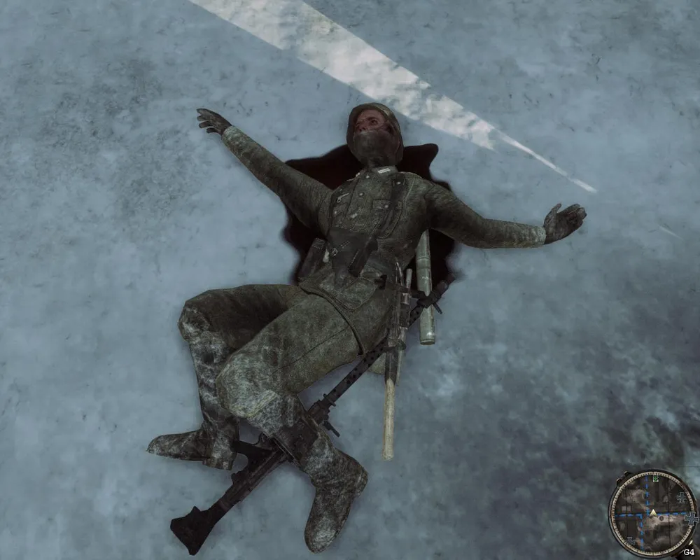 Условная хардкорность сериала «Red Orchestra» (не будем забывать, что она именно условная) заключается не только в том, что мы не умеем на бегу сменять оружие, не можем пометить врага на карте и вызвать из ниоткуда свору полуголодных собак-людоедов. Поразительная система хитбоксов выводит проект на совершенно новый уровень сложности: получив ранение в грудь, вы все еще сможете вести огонь по врагу, истекая при этом кровью. Были нередки случаи, когда игрок, “ухватив” пару пуль, умудрялся уносить с собой на тот свет несколько оппонентов, а после сам валился камнем на землю. Попадание в сонную артерию влечет за собой потемнение экрана, а после – неминуемую смерть. Зачастую не только не понимаешь, откуда же прилетела та роковая пуля, но и когда она успела в тебя попасть. К слову, некоторые кровотечения можно остановить, вовремя наложив повязку. Забудете оказать себе медицинскую помощь – превратитесь в Балбеса из «Операция “Ы”» с красным пятном на рубахе. Только уже заведомо мертвого.