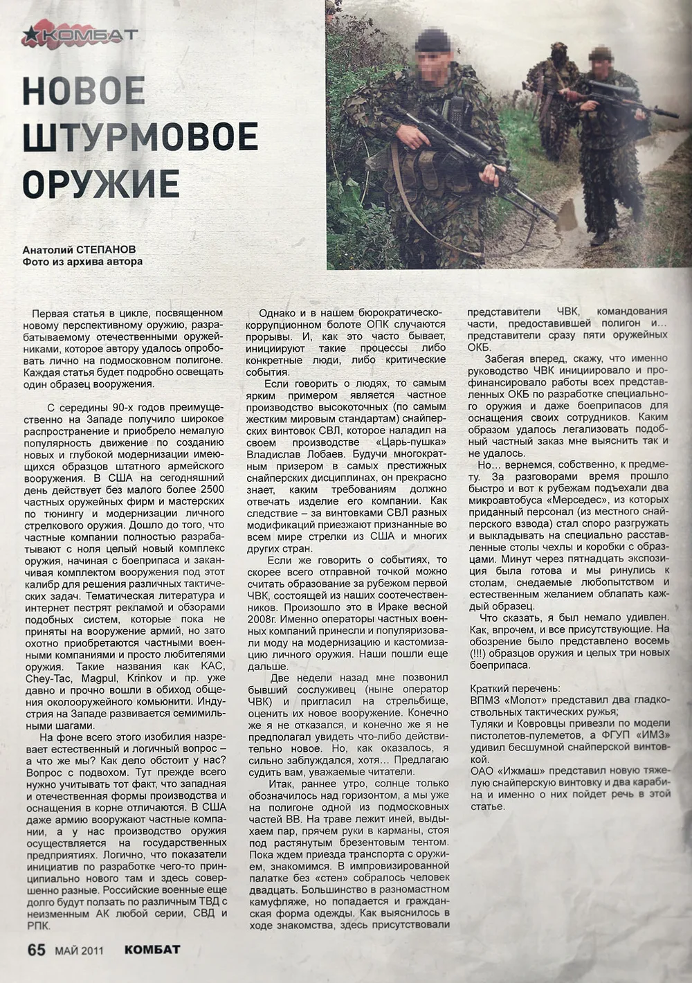 Статья из оружейного журнала "Комбат", посвященная новому штурмовому оружию, принятому на вооружение ЧВК