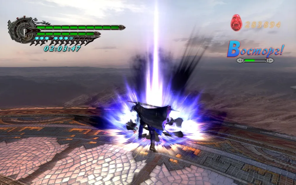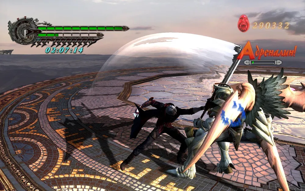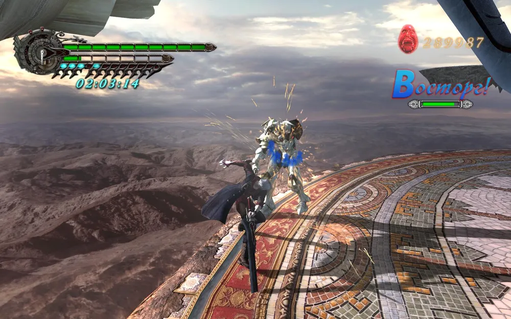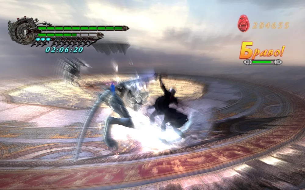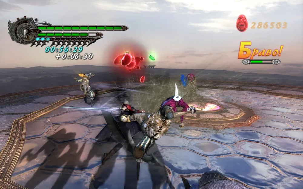 До сих пор, на форумах ведутся баталии по вопросу — Откуда у Ниро, эта его, демоническая рука? Но я ограничусь простым рассказом о ее способностях. По нажатию кнопки, Ниро хватает противника, и начинает вытворять с ним самые страшные вещи, впрочем, до жестокости Кратоса, ему конечно далеко. Некоторых противников необходимо ослабить, прежде чем «хвататься рукой». Есть две версии приема, воздушная и наземная. Так же Devil Bringer можно использовать, что бы сблизится с противником, притянув его к себе или же наоборот, подтянувшись к нему. Можно увеличить длину «Хвата». Так же, рука незаменима для снятия покрова Мефисто или Фауста и щитов ангелов. Ниже я приведу моменты, когда эту руку можно использовать.