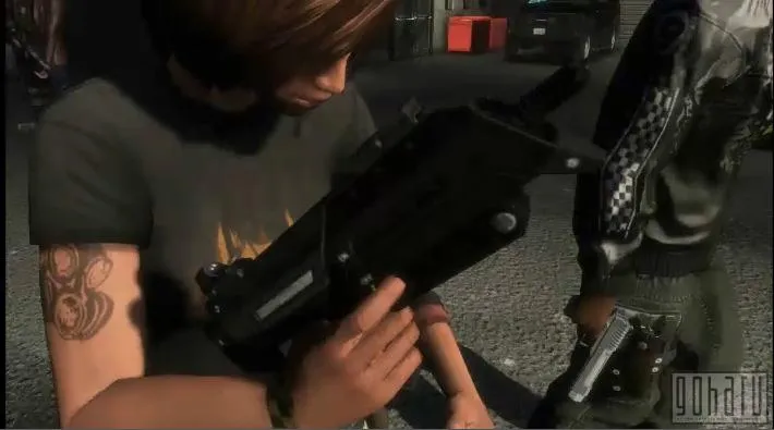 Оружие, находящееся в руках у нашей девушки-гангстера, мгновенно навевает сходство с автоматом "MP5k". "MP5k" является младшим братом "MP5" – который встречается в несчетном количестве игр, например в недавнем Call of Duty 4. Он имеет несколько большие размеры, чем "Узи", а также является более качественным. "MP5k" пользуется благосклонностью полицейских специалистов и военных групп, так как с его помощью можно вести как точную полуавтоматическую стрельбу, так и простую автоматическую.