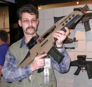 автор сайта позирует с автоматом XM8 на выставке ShotShow-2004.