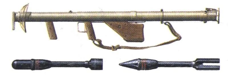 Разработанное в начале 1942 года, это оружие более известно под именем «базука» («Bazooka»)- это прозвище оно получило по аналогии с духовым музыкальным инструментом, на котором в свое время играл Боб Берне, известный американский эстрадный артист. Устройство ее было нехитрым — гладкоствольная металлическая труба с деревянным прикладом, электрозапалом и примитивным прицелом. Базука вела огонь длинными оперенными реактивными снарядами с кумулятивным зарядом в головной части. Вскоре на смену Ml появилась модификация М9, более удобная в применении. Помимо кумулятивных снарядов, это чрезвычайно мощное противотанковое средство можно было заряжать фугасными и зажигательными снарядами. Базука стала чрезвычайно эффективным оружием против полевых укреплений, пулеметных гнезд и других подобных объектов. Реактивный гранетомет М9 оставался на вооружении американской армии вплоть до 1950-х годов, пока во время Корейской войны не был заменен на более мощную модель калибром 3,5 дюйма, которая до сих пор используется в некоторых странах мира.