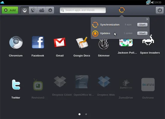 Сосредоточившись на интеграции платформы с веб-сервисами и социальными службами, разработчики Jolicloud не позаботились об удобстве переключения между запущенными приложениями. Пользователю предлагается только ужатая донельзя панель задач, отображающая невыразительные значки программ, и комбинация клавиш Alt+Tab.