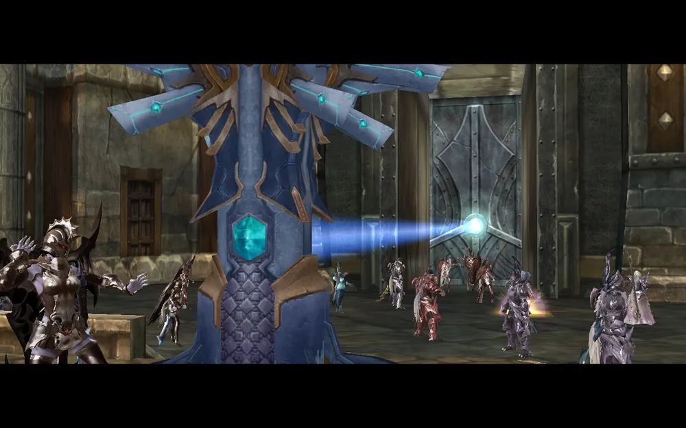 Но защитники не просто отстреливают атакующих и стараются защитить врата,а активно используют имеющийся у них Restoration Stone,который ремонтирует врата.