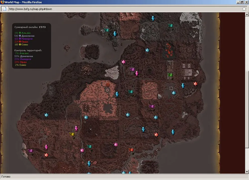 Все игроки могут отслеживать за изменениями захваченных расами территорий на сайте игры в режиме онлайн - http://www.bsfg.ru/map.php#down