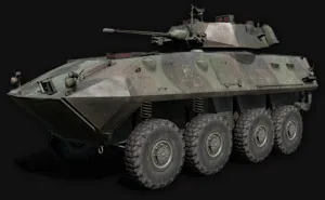 LAV-25 - это полноприводная четырехосная БМП (бронированная машина пехоты), используемая МП США. Она способна перевозить 9 человек и оснащена скорострельной пушкой М242 Bushmaster 25 мм, а также двумя пулеметами М240 7,62 мм.