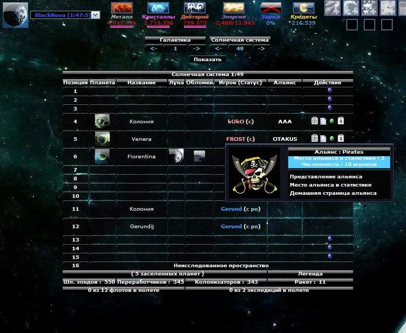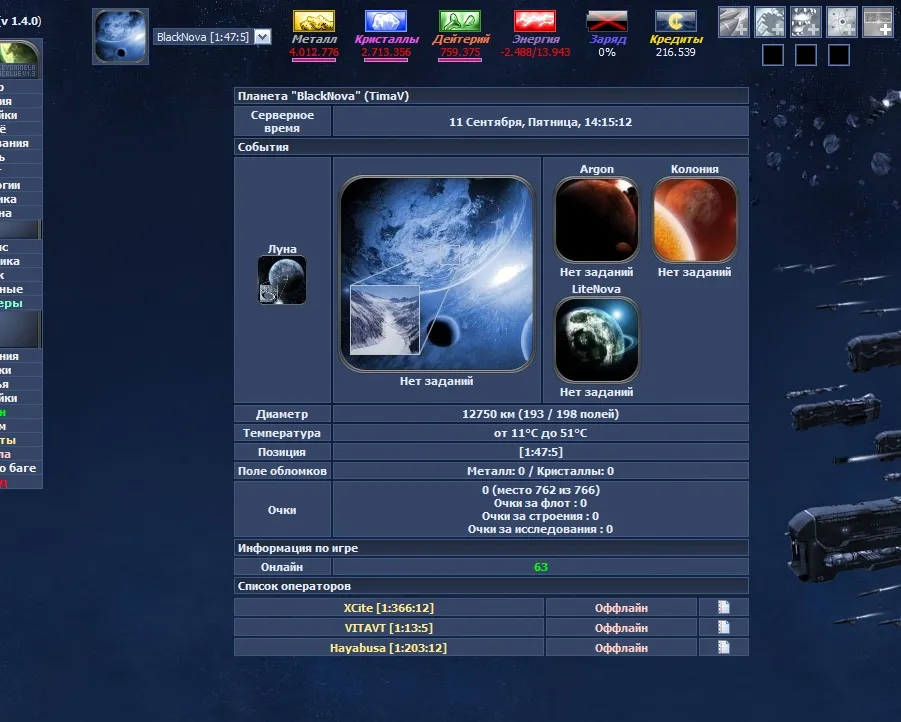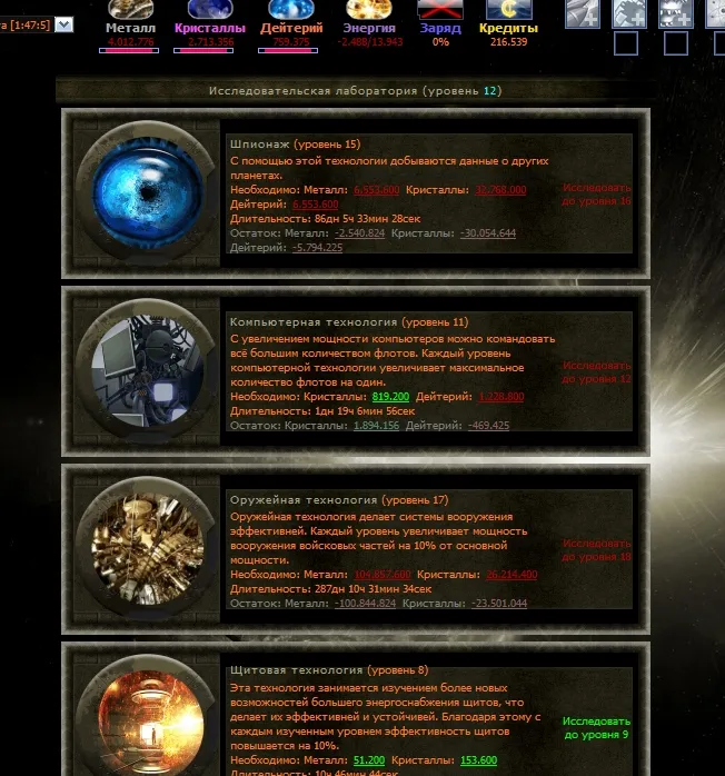 При регистрации вам дается планета и начальное количество ресурсов. В процессе игры вы должны развить свою империю из 9 планет, сражаясь с другими игроками и развивая свои колонии. Расчет игрового процесса происходит в реальном времени. Кто знаком с игровым миром огейм, перечислю новые элементы данной Вселенной.