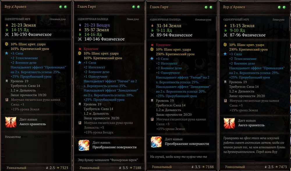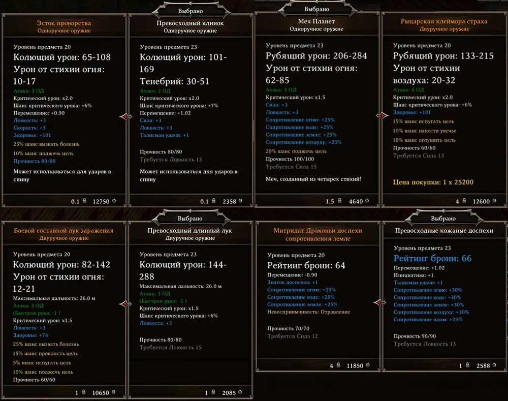 Предметы вооружения и экипировки, изготовленные героями высоких уровней, значительно превышали по своим характеристикам имеющиеся в продаже.