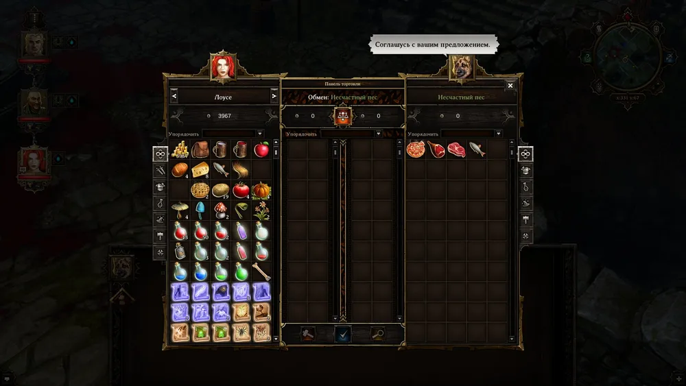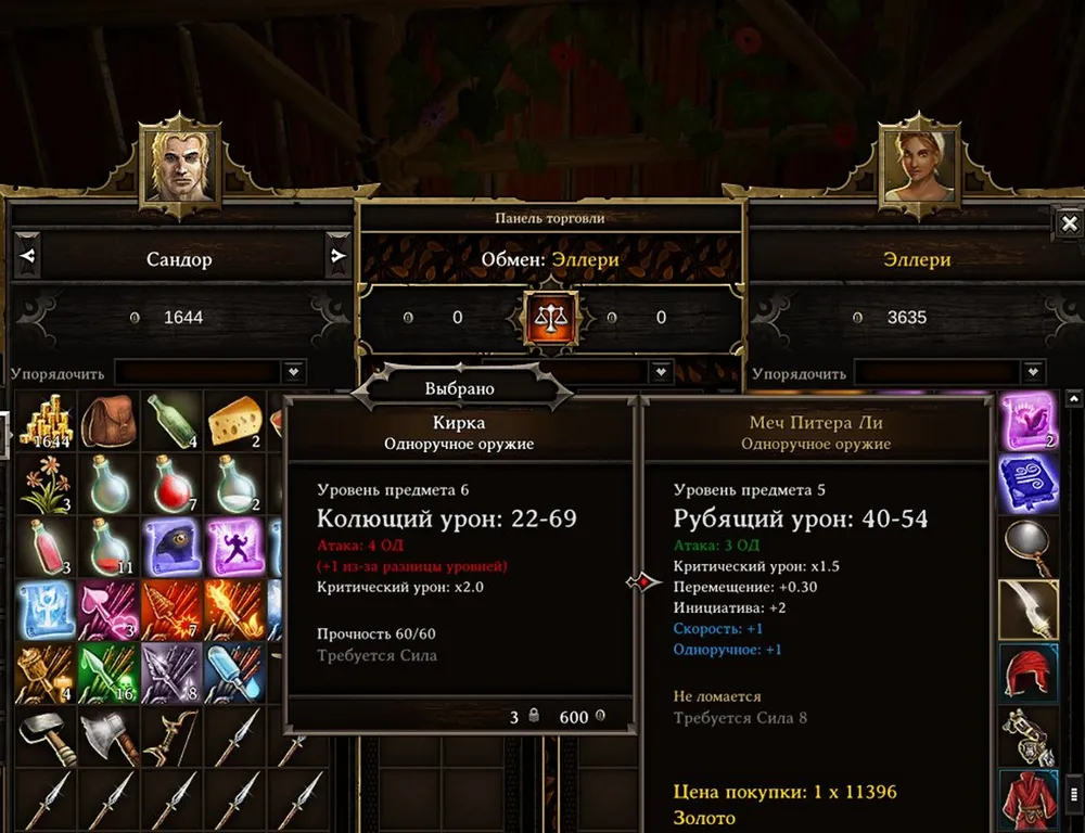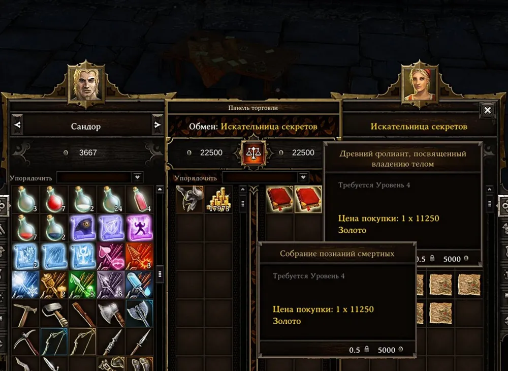 Во второй – только у того, кто давал «взятку»; покупать и продавать выгодно лишь ему: лишние хлопоты с передачей предметов из рюкзака в рюкзак. («Торговля»? А что, кто-то тратит очки развития на это умение?)