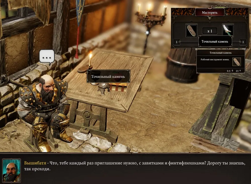 Самое грустное: играя в альфа-версию, я украл у Хана брусок и наточил копьё, увеличив его характеристики! Вот зачем было уничтожать такую великолепную возможность – заточку клинков?!