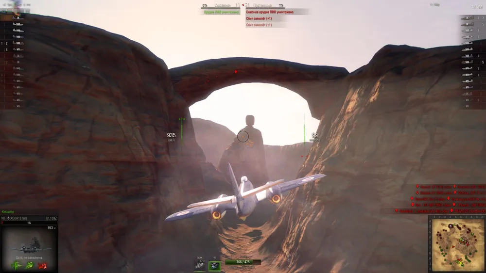 Я это уже говорил, но все же повторюсь – управлять винтокрылыми и реактивными пташками очень просто. По сути, от нас только и требуется, что указывать самолету направление и жать на отвечающую за активацию форсажа клавишу. Все же аркада, получается? Пусть так, но это осознанный выбор разработчиков – зачем искусственно усложнять геймплей, если это никак не способствует главной цели – развлекать аудиторию и делать все, чтобы она получала удовольствие от игрового процесса, а не наоборот. По той же причине самолеты в WoWP не разваливаются на части с одного меткого попадания (за исключением критических повреждений), не входят в штопор после неудачного маневра и не падают камнем после перегрева двигателя. Кому-то – тем же поклонникам симуляции – это совсем не нравится, но в World of Warplanes они не особо-то и играют.