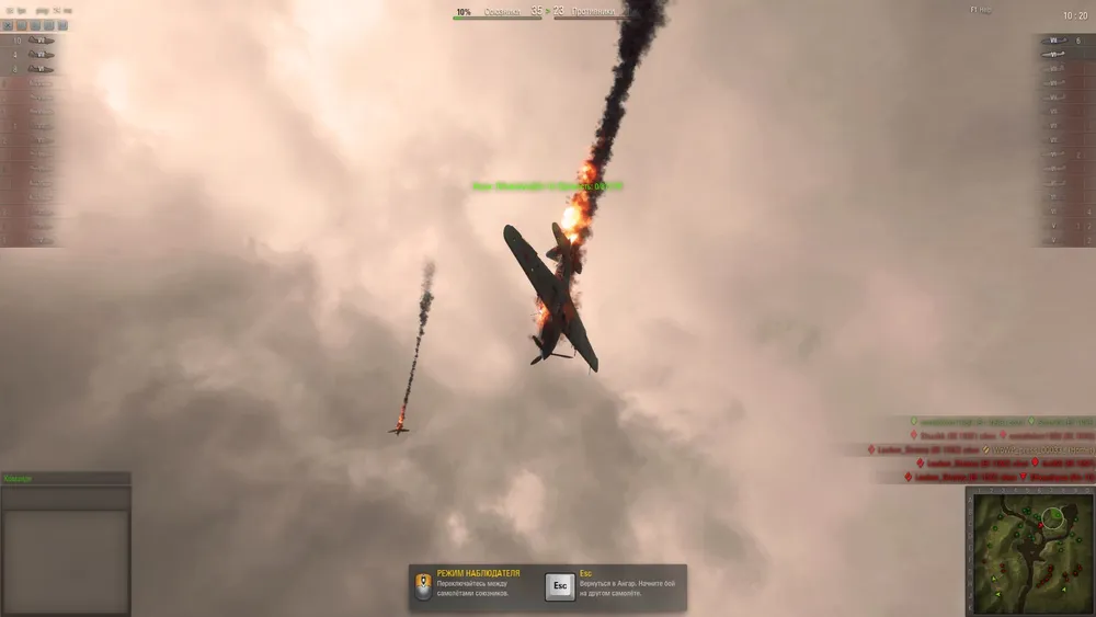Изобилия режимов в World of Warplanes пока не наблюдается, впрочем, этого следовало ожидать. Есть обучающий и тренировочный режимы, а также, простите за тавтологию, стандартный “Стандартный бой”. В сражении участвуют две команды по 15 человек в каждой, пилоты подбираются системой в случайном порядке. Для достижения победы требуется либо полностью истребить команду противника, либо получить преимущество, уничтожая вражеские объекты на земле и воде: радары, базы, зенитные батареи и военные корабли. Чаще всего победитель выявляется путем воздушных противостояний, но если в состав команде находится больше число штурмовиков и тяжелых истребителей, то и второй вариант развития событий исключать не стоит. Но тут уж как повезет – в “Самолетиках”, как и в “Танчиках”, присутствует деструктивный социум, способный превратить любой отдельно взятый бой в форменную свалку: штурмовики гоняются друг за другом в небесах, легкие истребители выполняют функции штурмовиков, все ругаются, злятся, нервничают. Но есть одно “но” – несогласованность действий внутри команды и наплевательское отношение ко всему и вся в WoWP карается куда жестче, чем в World of Tanks, где на тупом “раше по центру” нет-нет, да и можно выехать. В “Самолетиках” же подобный подход ведет к заведомому проигрышу – анархистам обидно, они плачут, но в итоге понимают, что лучше играть по правилам, нежели глупить и сидеть, как говорится, на бобах – без опыта и без денег.