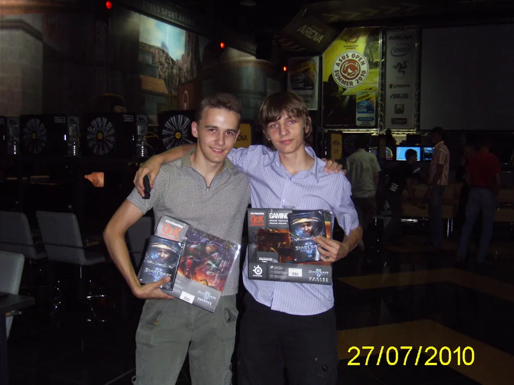 А это мы уже сфоткаись со своим старкрафтом и подписанными подарочными ковриками :)