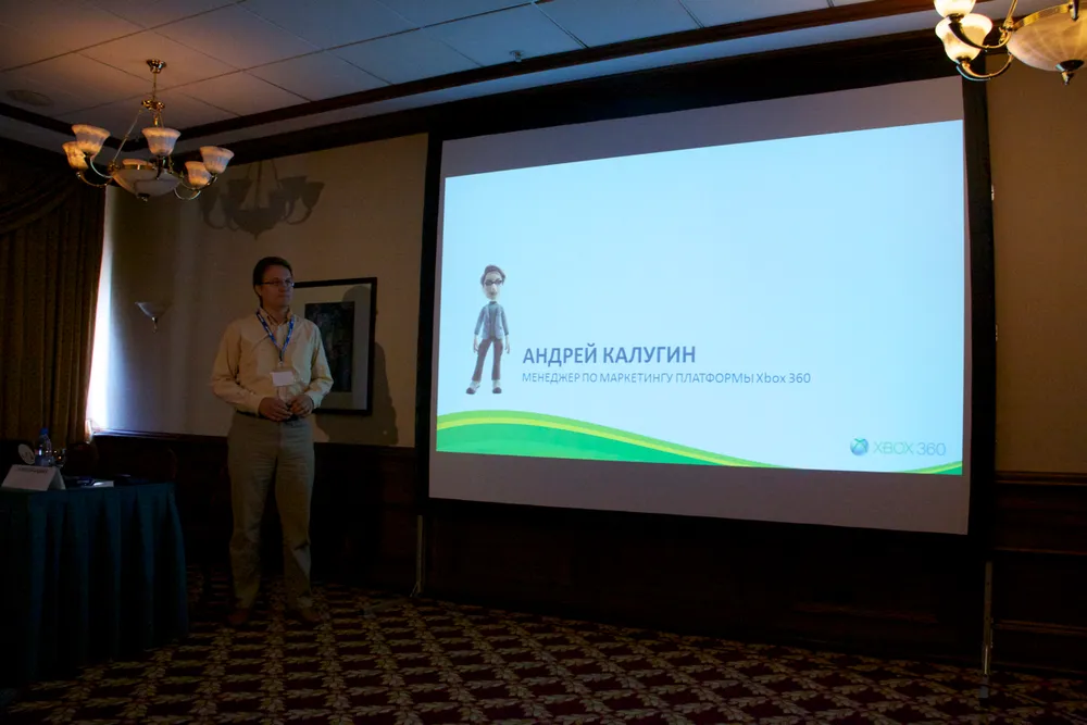 Андрей Калугин, менеджер по маркетингу платформы Xbox 360, второй из выступавших на конференции.